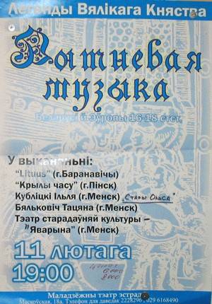 11 февраля 2006 года (суббота) состоится концерт "Лютневай музыкi". Из цикла "Лягенды Вялікага Княства".