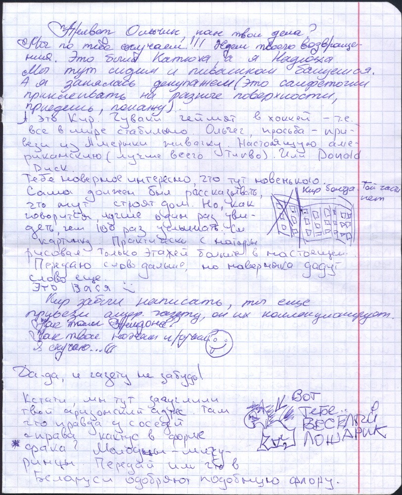 В другой галактике одна компания, окрыленная Цэ2-аШ5-ОаШ, решила протянуть похожую руку дружбы простой девушке из Аризоны, написав ей красивое романтическое письмо. Кто знает чем могло бы все закончится, но письмо так и не попало адресату. Возможно, стоило написать и отправить письмо чуть раньше, и тогда бы почтальон на оленях успел бы в Аризону. Но простая девушка уже вернулась домой, а письмо отчаянно бродит по миру, ожидая когда его прочтут.